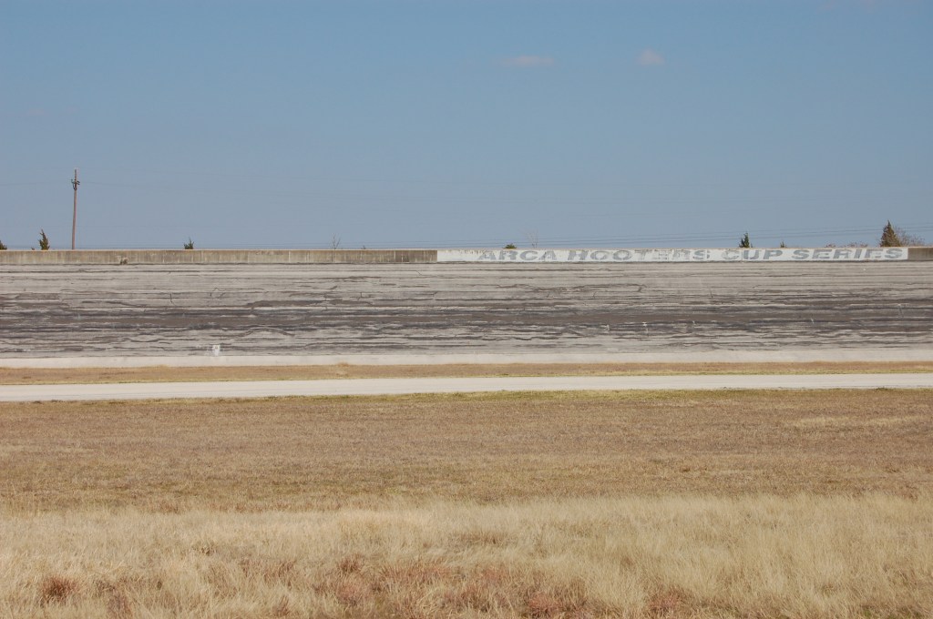 The words “ARCA Hooters Cup Series” faded on the wall in turn three and a water tower above turn four is decorated in the colors of Exxon, the Houston-based oil company that sponsored the final professional level race held in 1996.