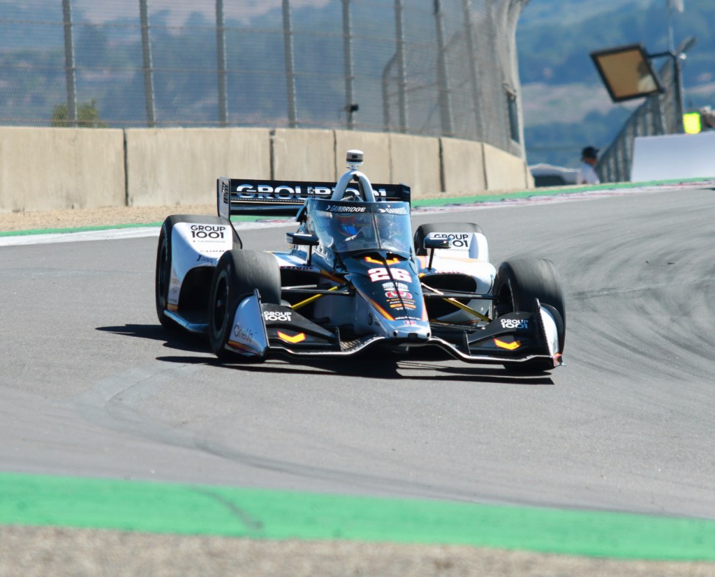 The two-time Laguna winner set a flyer of 1 minute 07.5382 seconds around the freshly repaved 2.238-mile road course. The younger Herta’s lap unofficially eclipsed the track record set by Helio Castroneves in 2000 at 1:07.5382s.